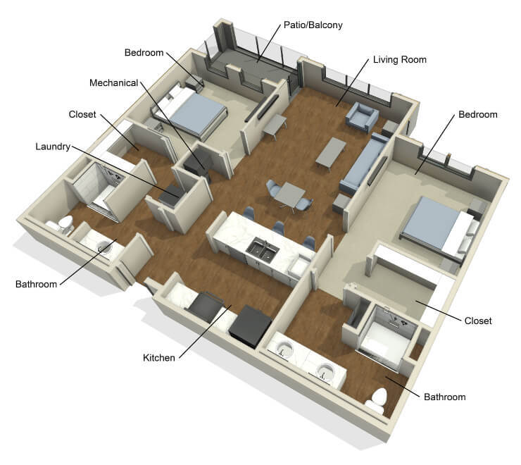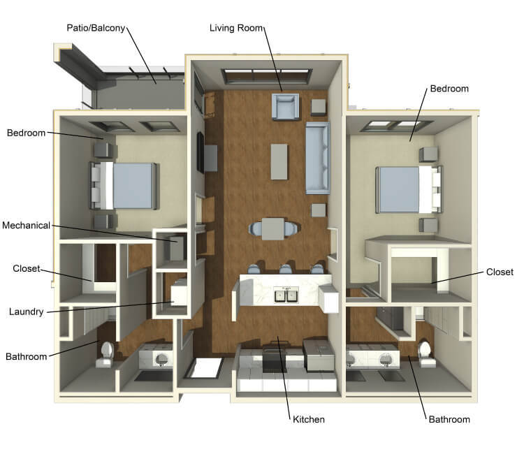 2 Dormitorios, 2 Baños, 1193 pies²Galería del Modelo
