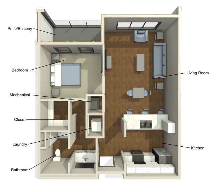 1 Dormitorio, 1 Baño, 868 pies²Galería del Modelo