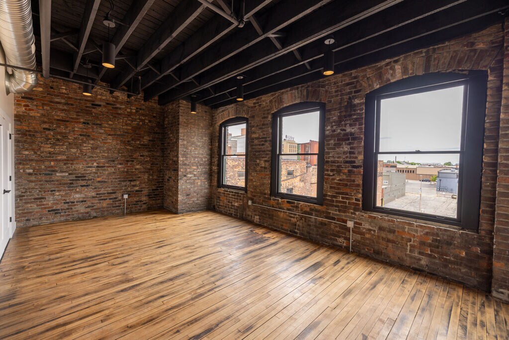 Experience historic charm reimagined for modern living at The Produce Lofts in downtown Toledo. These 1-bedroom loft apartments located in the restored 1896 Okun Produce Building, feature refinished hardwood floors, exposed brick, and a designer kitchen with quartz countertops, soft-close cabinets, porcelain tile backsplash, brushed gold pendant lighting, garbage disposal, and a water & ice-dispensing refrigerator. Enjoy a full-size in-unit washer & dryer, linen closet, porcelain tile shower surround with chic bathroom vanity, and bedroom ceiling fan. Building perks include elevator access, on-site parking, a pet-friendly policy, and a one-of-a-kind outdoor space - a retreat for relaxing by day and gathering at night. Just steps from restaurants, coffee shops, the riverfront, and Fifth Third Field, The Produce Lofts puts you at the center of it all.