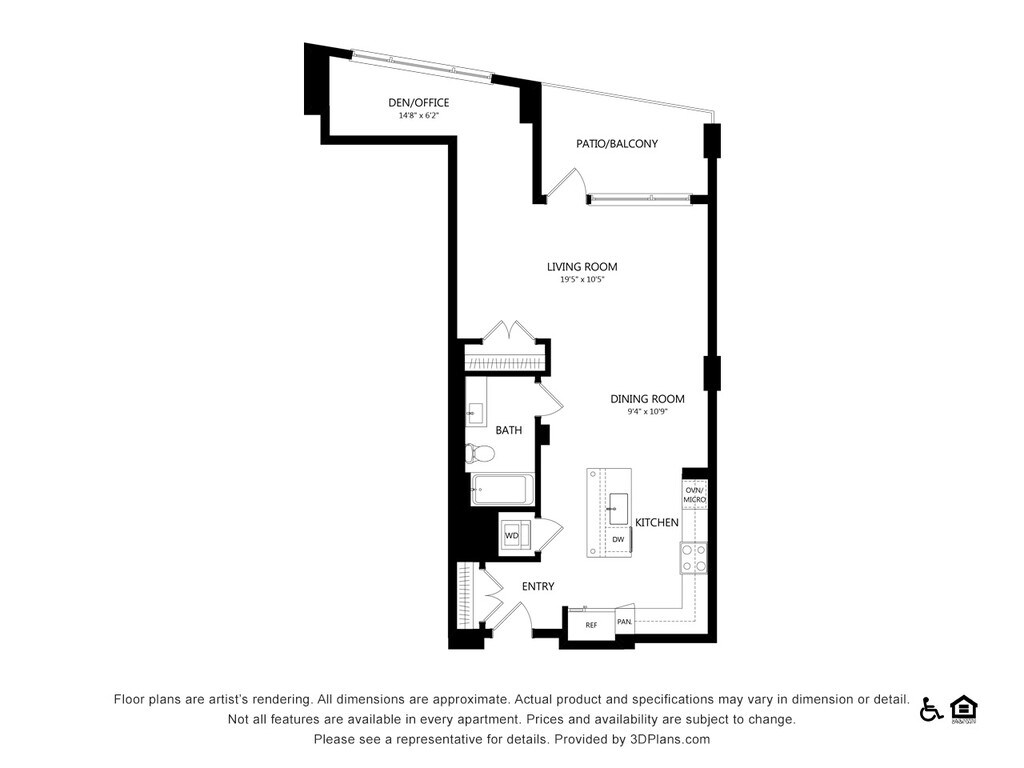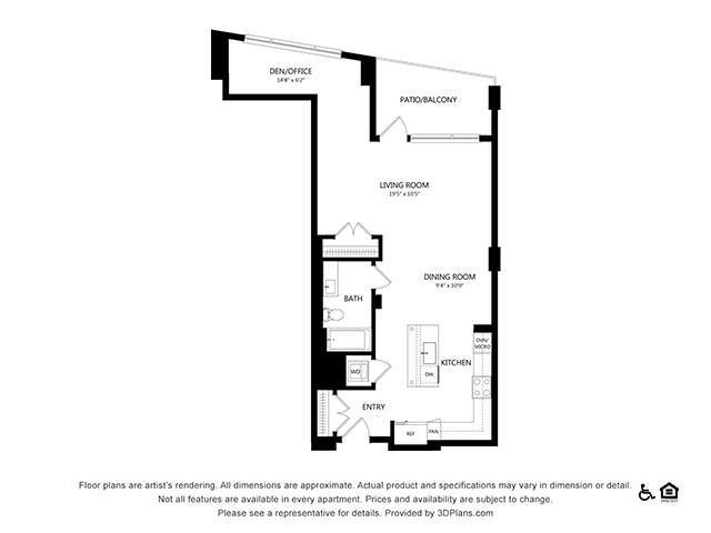 Estudio, 1 Baño, 819 pies²Galería del Modelo