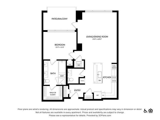 1 Dormitorio, 1 Baño, 1330 pies²El más grandeEsta opción tiene las unidades más grandes para este modeloGalería del Modelo