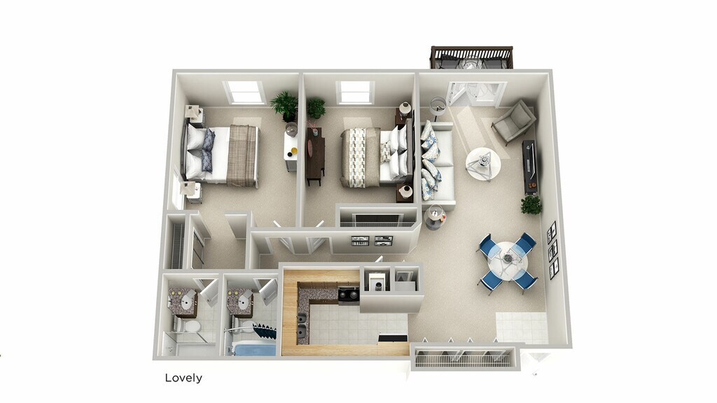 Modelo de apartamento: Minnehaha2 Dormitorios, 2 Baños, 1283 sq ftNo Disponible![]()