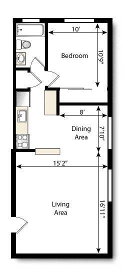 1 Dormitorio, 1 Baño, 435-500 pies²Disponible AhoraGalería del Modelo
