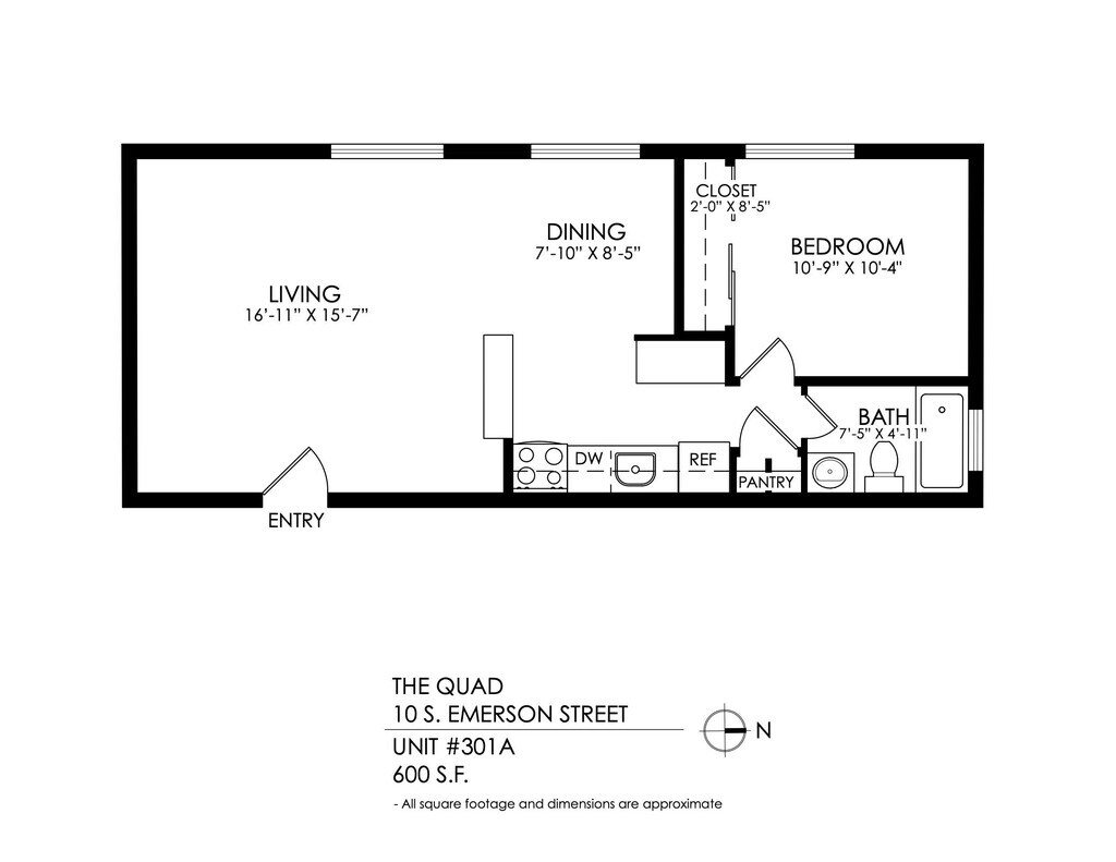 2 Bedroom - Plano 1 Unidad de apartamento: 105AModelo de apartamento: 2 Bedroom2 Dormitorios, 1 Baño, 710 sq ftDisponible Ahora![]()