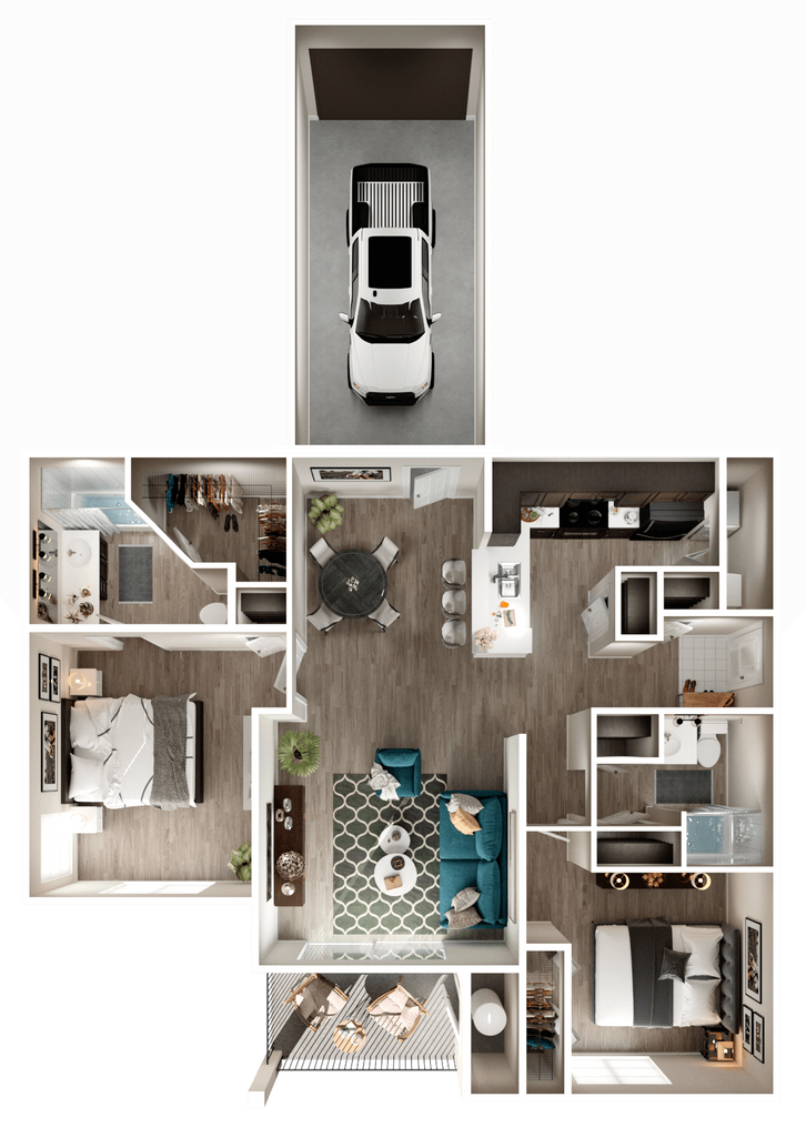 2 Dormitorios, 2 Baños, 1100 pies²Disponible AhoraGalería del Modelo