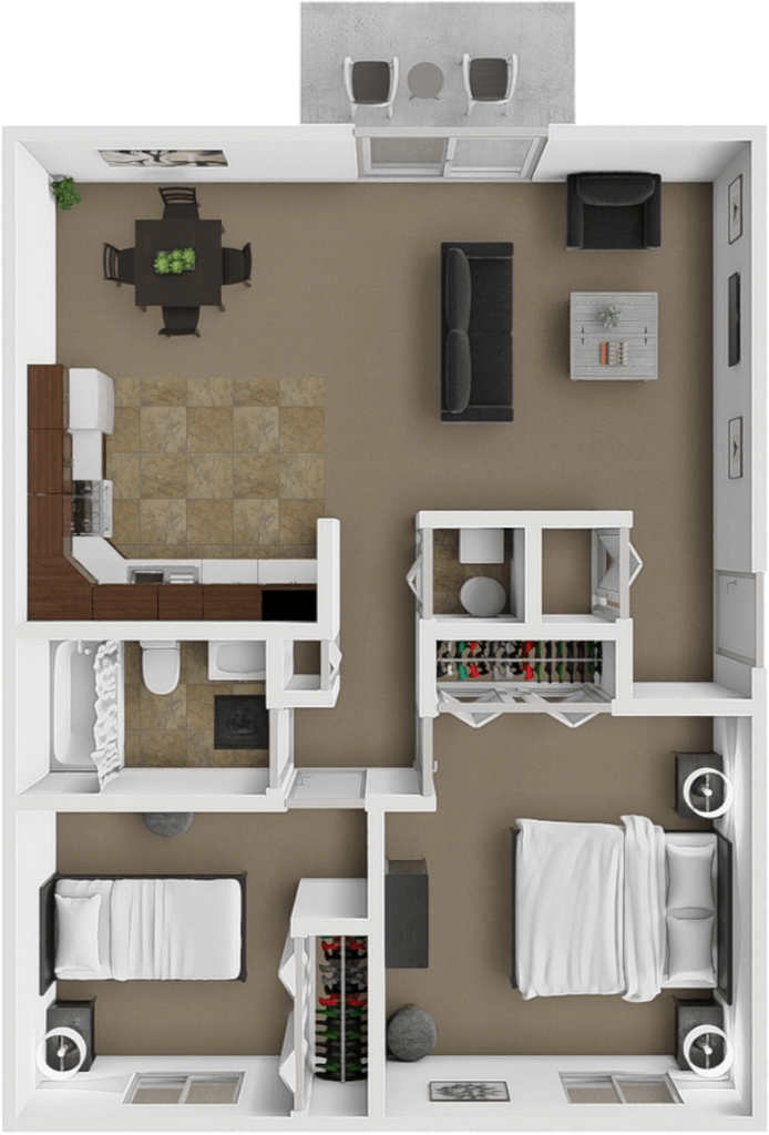 Modelo de apartamento: Flintstone$6651 Dormitorio, 1 Baño, 587 sq ftDisponible Ahora![]()