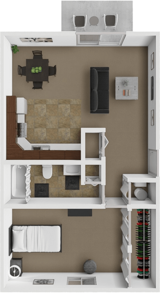 1 Dormitorio, 1 Baño, 587 pies²Disponible AhoraGalería del Modelo