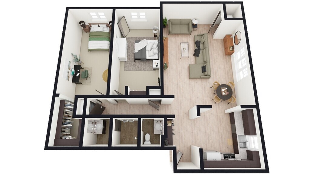 2 Dormitorios, 1 Baño, 1029 pies²Disponible August 3, 2026Galería del Modelo