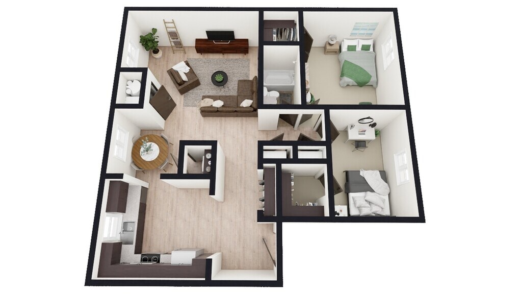 Modelo de apartamento: C - 2x1.5$8602 Dormitorios, 1.5 Baños, 1110 sq ftDisponible August 3, 2026![]()