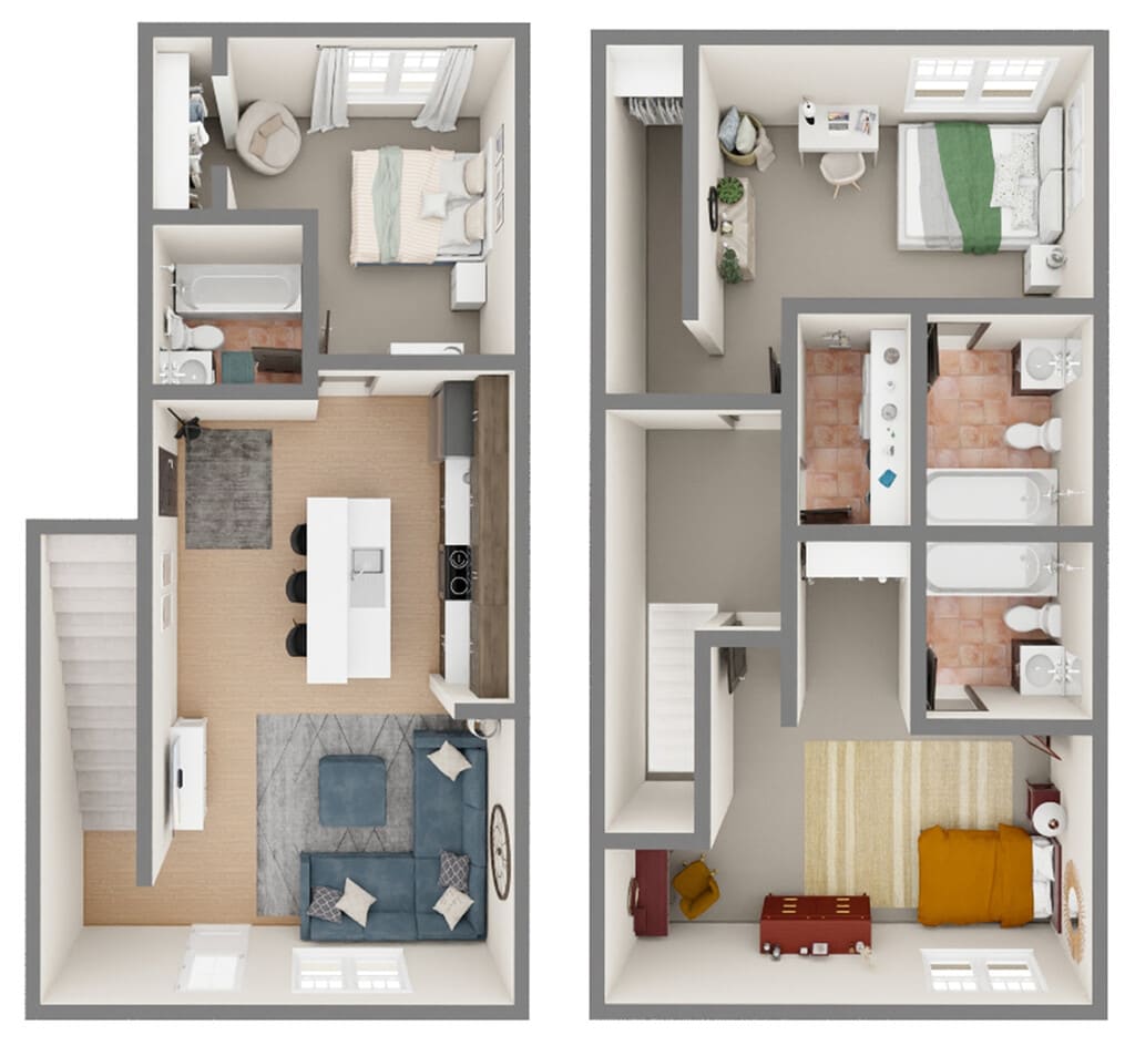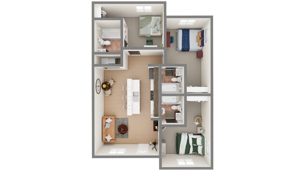 Modelo de apartamento: C2 - 3x3Desde $6953 Dormitorios, 3 Baños, 1283 sq ftDisponible Ahora![]()