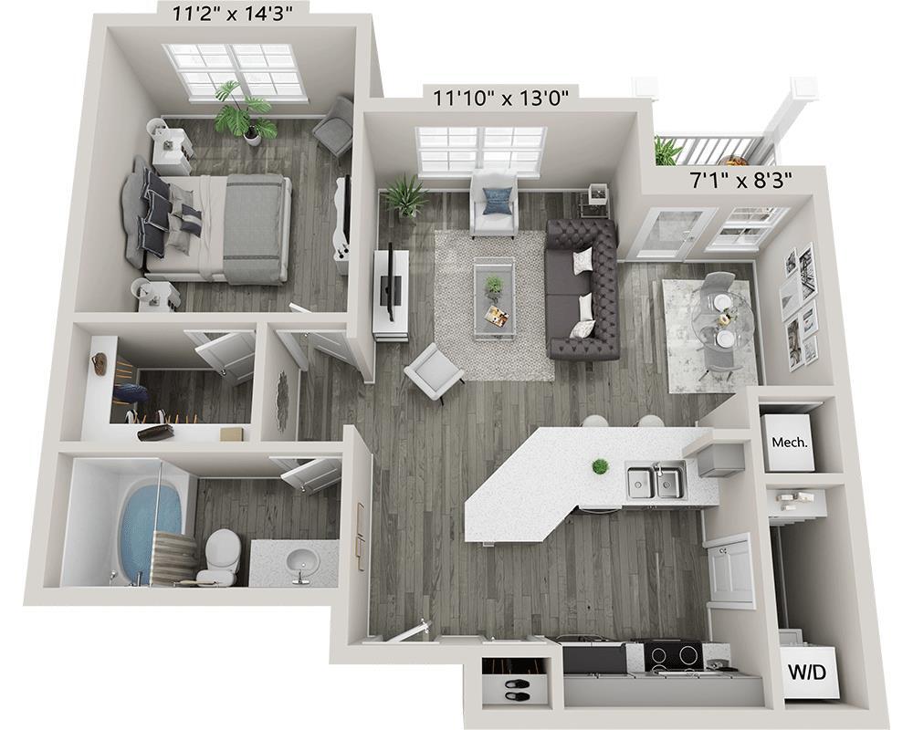 1 Dormitorio, 1 Baño, 764 pies²Disponible May 1Galería del Modelo