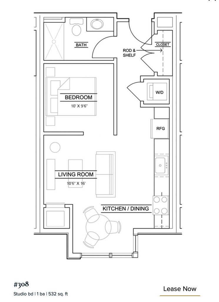 1 Dormitorio, 1 Baño, 410-532 pies²Más CargosDisponible Mar 21Galería del Modelo