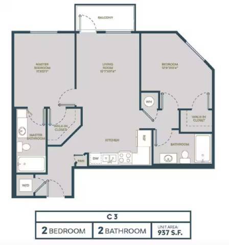 C3 - Plano 1 Unidad de apartamento: 709Modelo de apartamento: C3$2,9002 Dormitorios, 2 Baños, 937 sq ftDisponible June 10, 2026Plano: C4