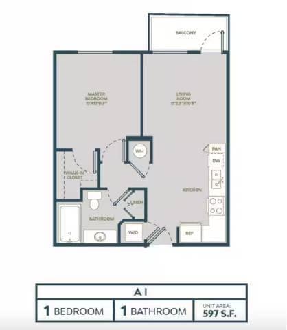 Modelo de apartamento: A1Desde $2,2751 Dormitorio, 1 Baño, 597 sq ftDisponible Ahora![]()