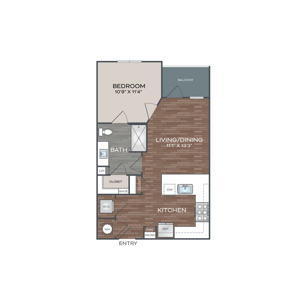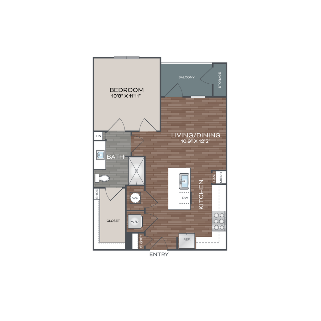 Modelo de apartamento: A1Desde $1,8871 Dormitorio, 1 Baño, 637 sq ftDisponible Ahora![]()