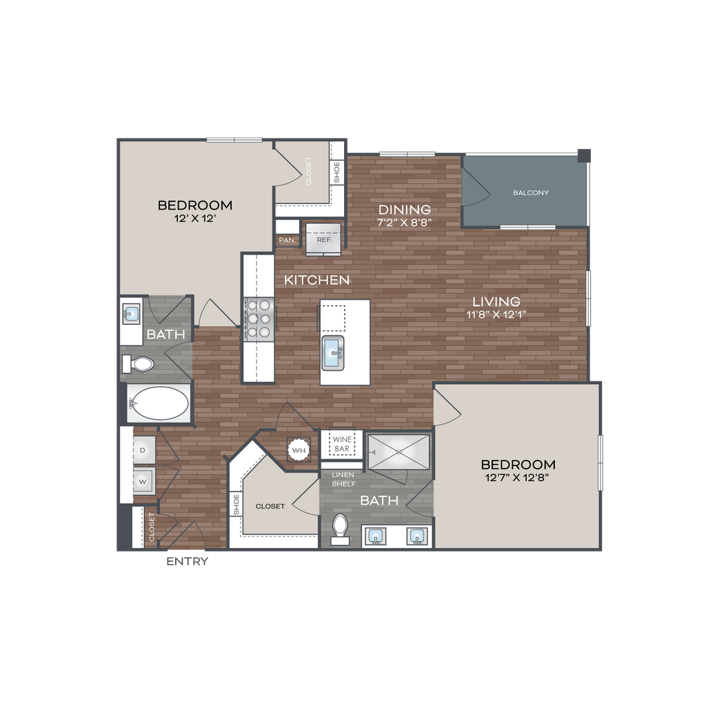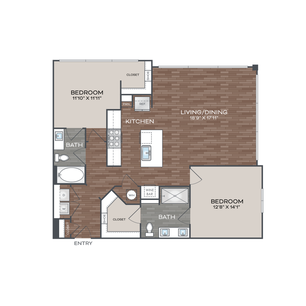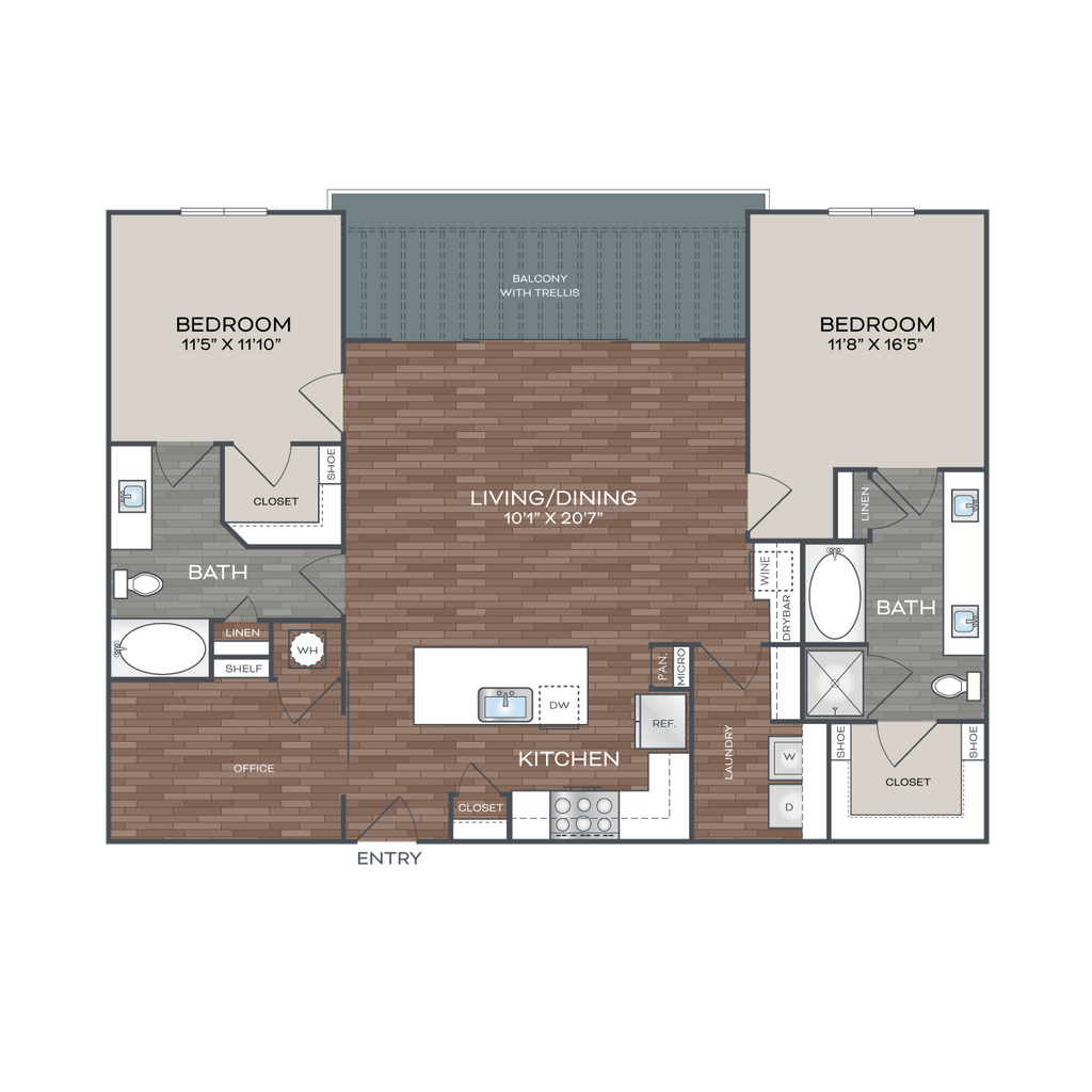 Modelo de apartamento: A2Desde $1,7601 Dormitorio, 1 Baño, 684 sq ftDisponible Ahora![]()
