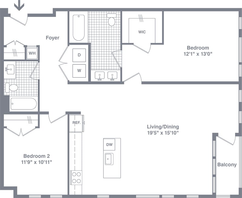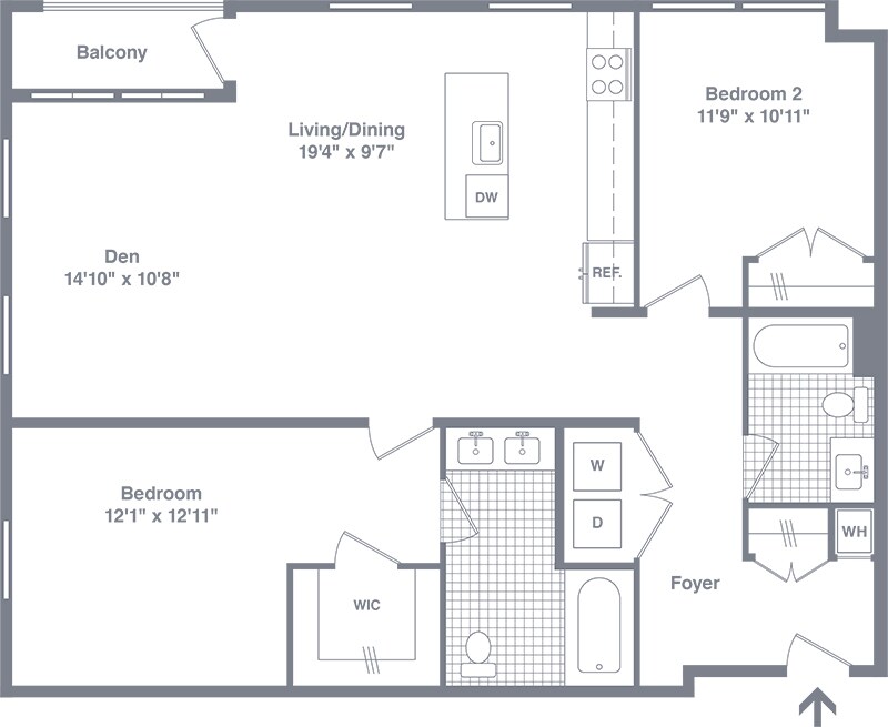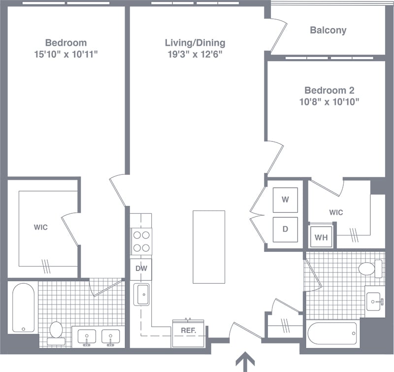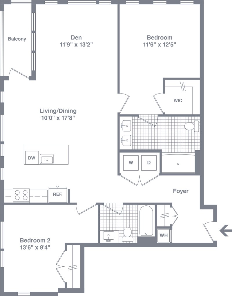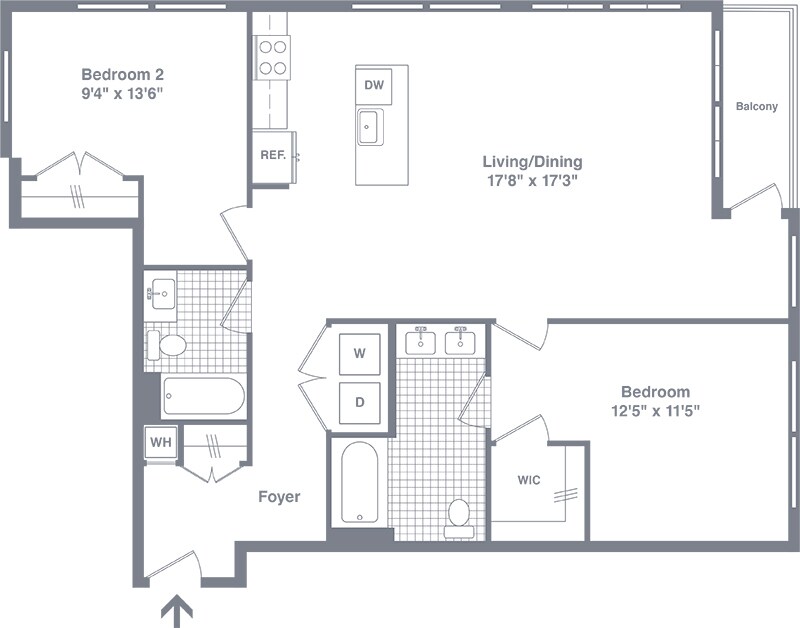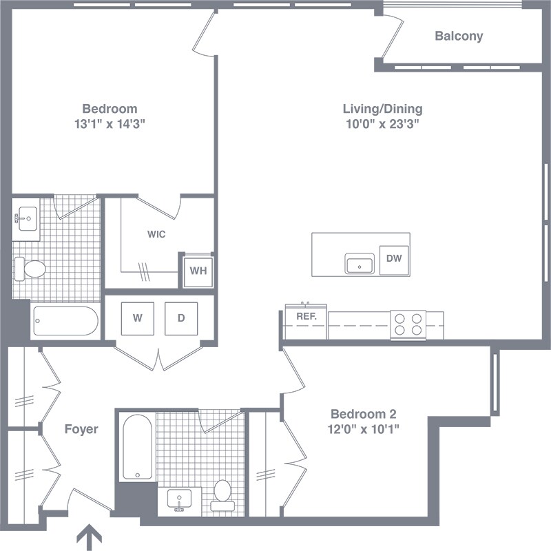 Modelo de apartamento: RB2BDesde $4,9502 Dormitorios, 2 Baños, 1010-1266 sq ftDisponible November 27, 2025![]()