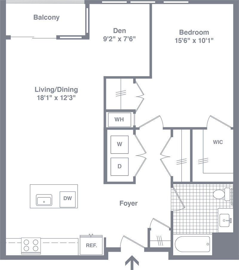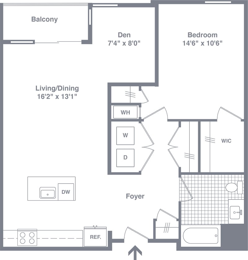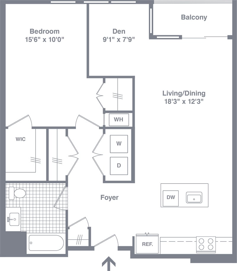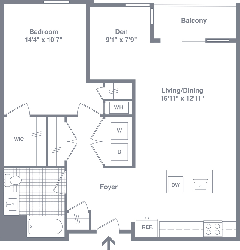 1 Dormitorio, 1 Baño, 852-897 pies²Disponible AhoraGalería del Modelo