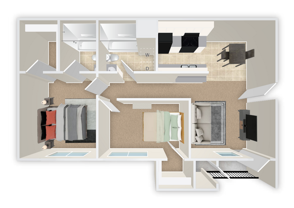 Modelo de apartamento: 2X2-B$1,4802 Dormitorios, 2 Baños, 919 sq ftDisponible February 23, 2026![]()
