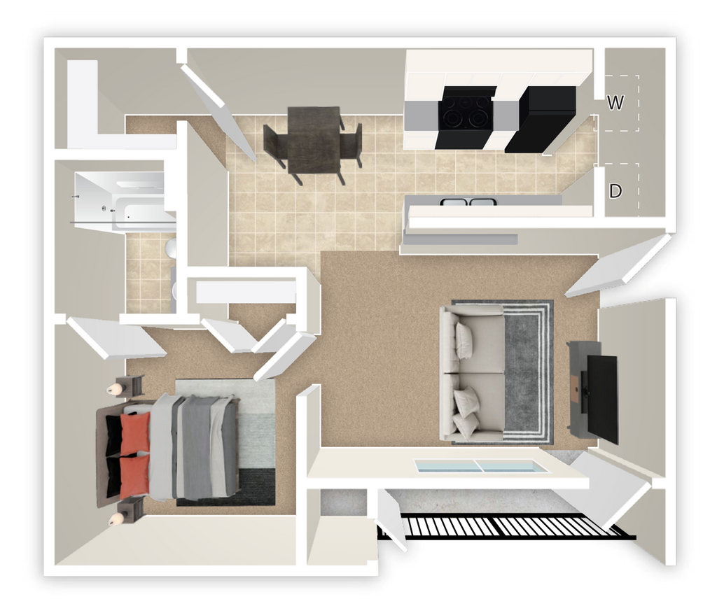 Modelo de apartamento: 1X1-A$1,2281 Dormitorio, 1 Baño, 690 sq ftNo Disponible![]()
