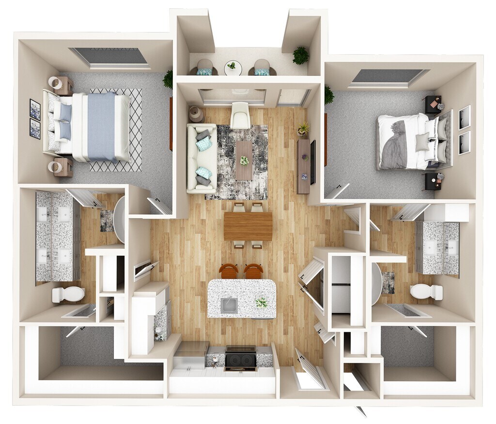 Modelo de apartamento: A2Desde $1,2681 Dormitorio, 1 Baño, 698 sq ftDisponible Ahora![]()