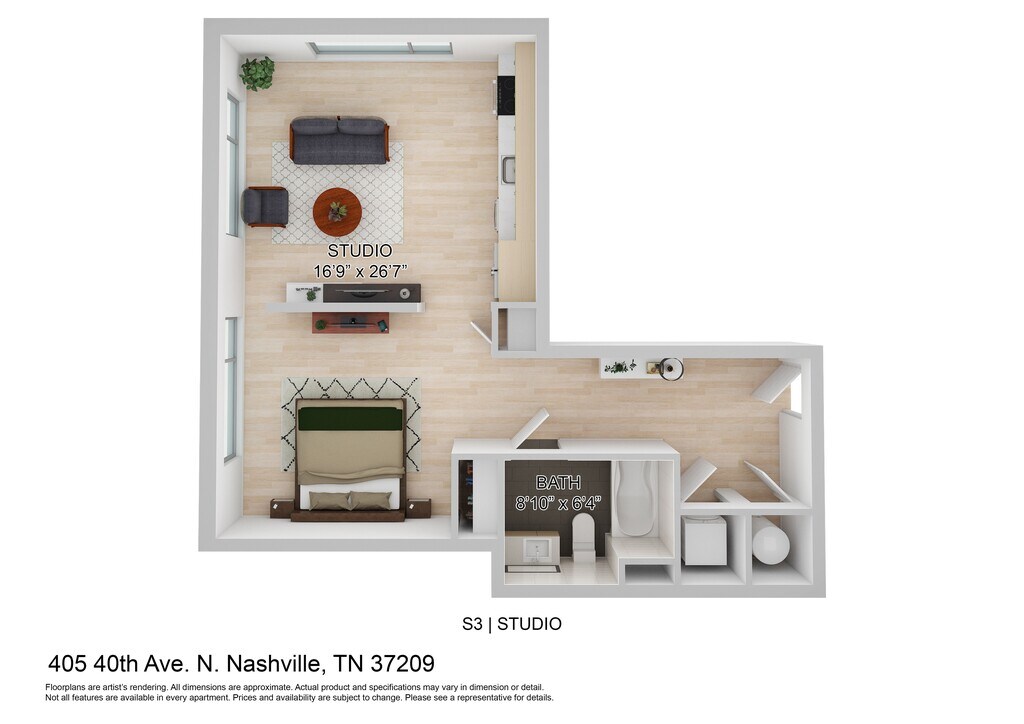 Estudio, 1 Baño, 532 pies²Disponible AhoraGalería del Modelo