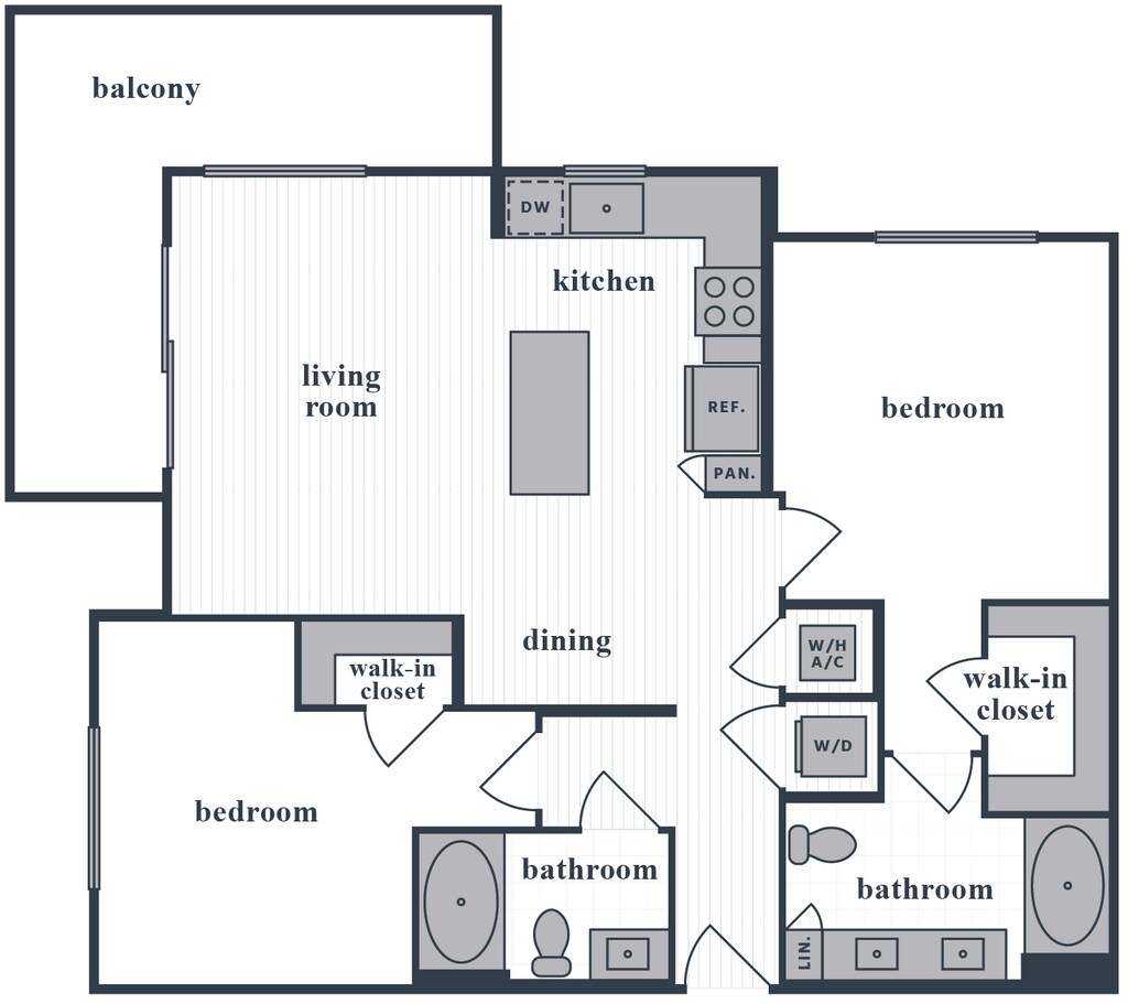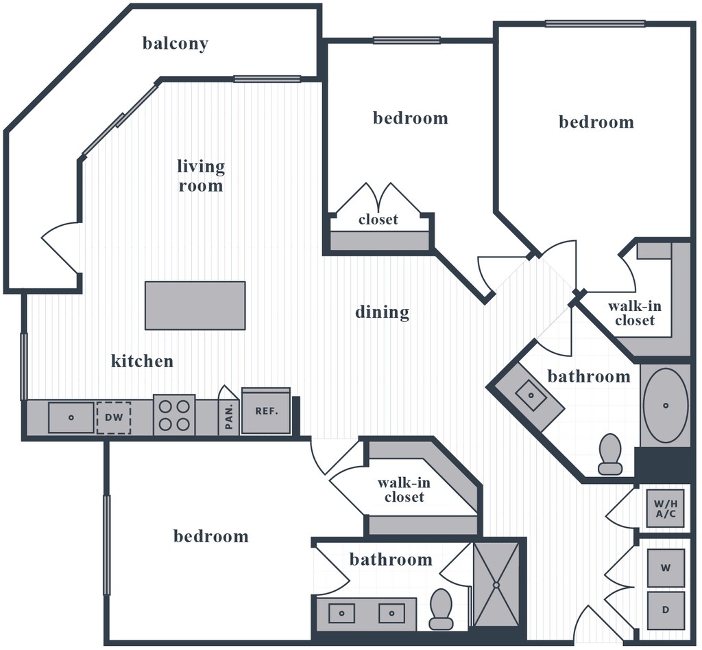 Modelo de apartamento: C13 Dormitorios, 2 Baños, 1360 sq ftNo Disponible![]()