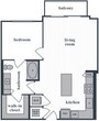 Modelo de apartamento: A31 Dormitorio, 1 Baño, 745 sq ftNo Disponible![]()