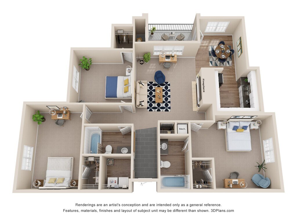 Modelo de apartamento: Creighton2 Dormitorios, 2 Baños, 1132 sq ftDisponible Ahora![]()