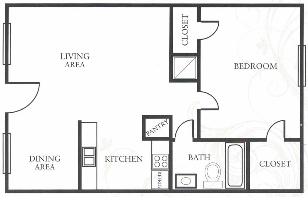 2 Dormitorios, 1 Baño, 735 pies²Disponible AhoraGalería del Modelo