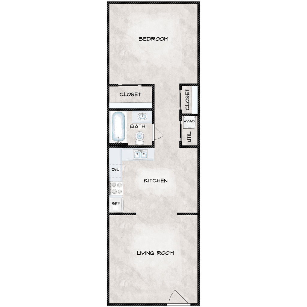 1 Dormitorio, 1 Baño, 750 pies²Disponible AhoraGalería del Modelo