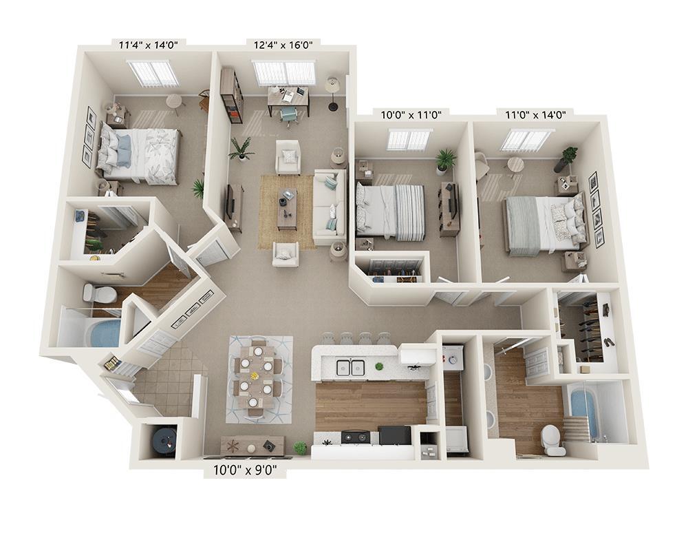 Modelo de apartamento: AzaleaDesde $1,6861 Dormitorio, 1 Baño, 771 sq ftDisponible Ahora![]()