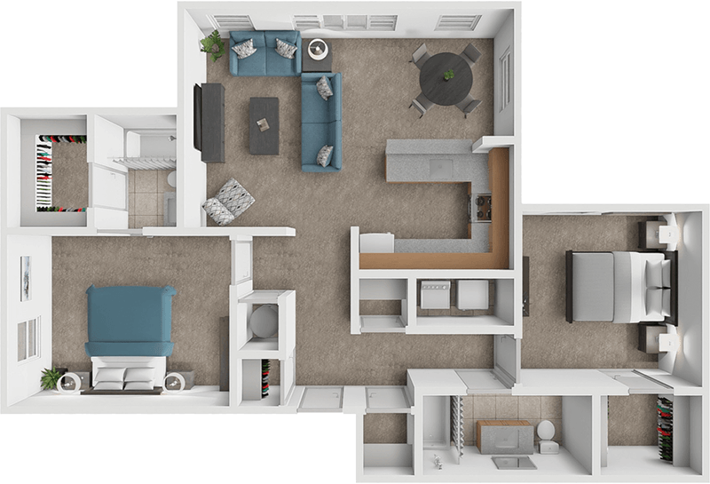 Modelo de apartamento: Emerald$1,4792 Dormitorios, 2 Baños, 970 sq ftNo Disponible![]()