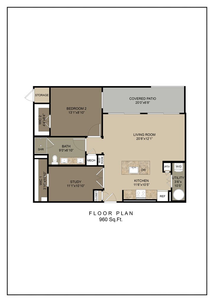 1 Dormitorio, 1 Baño, 960 pies²Disponible AhoraEl más grandeEsta opción tiene las unidades más grandes para este modeloGalería del Modelo