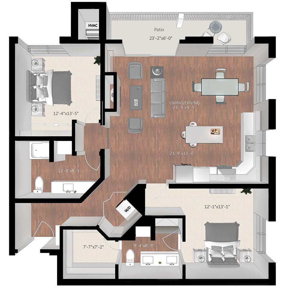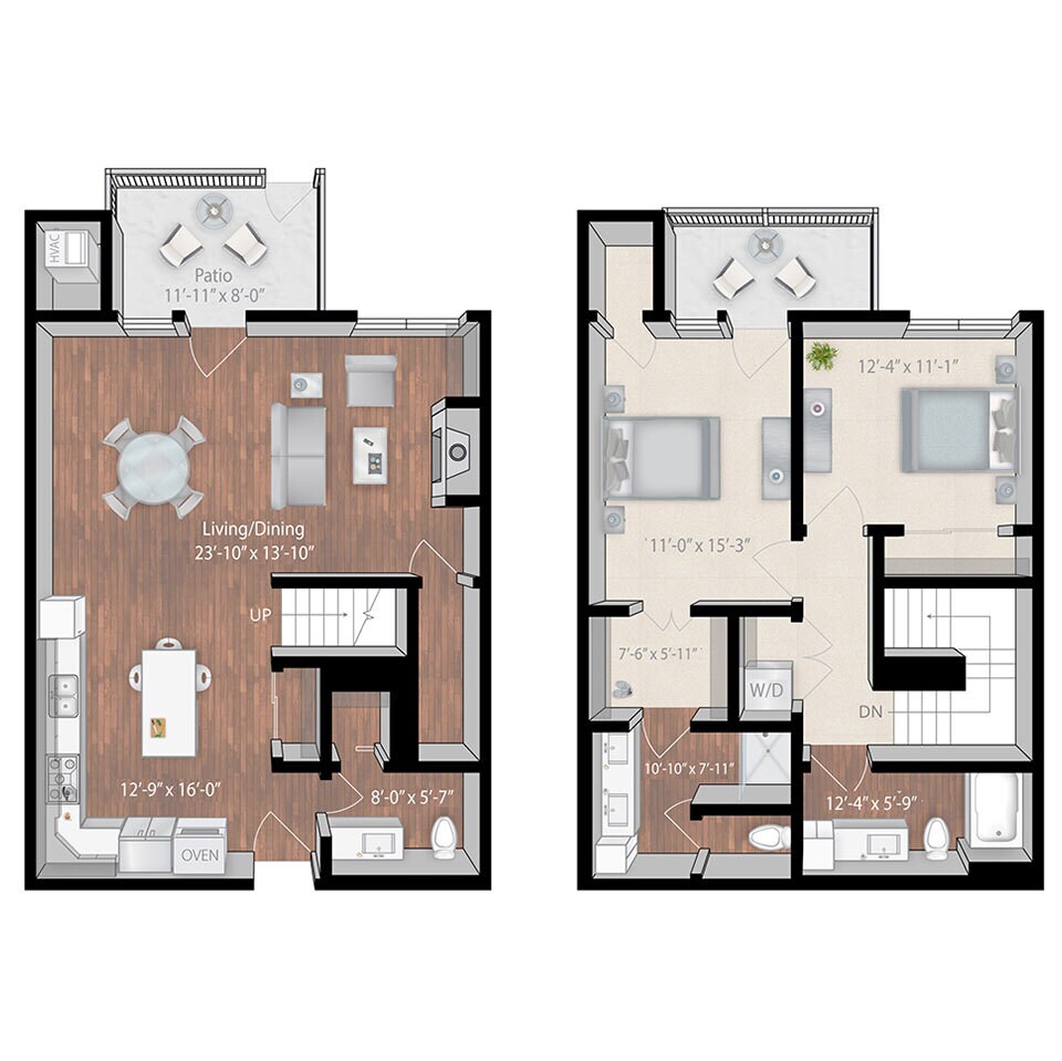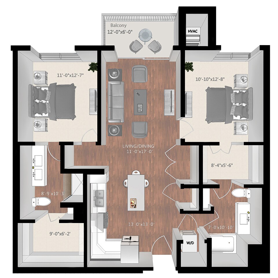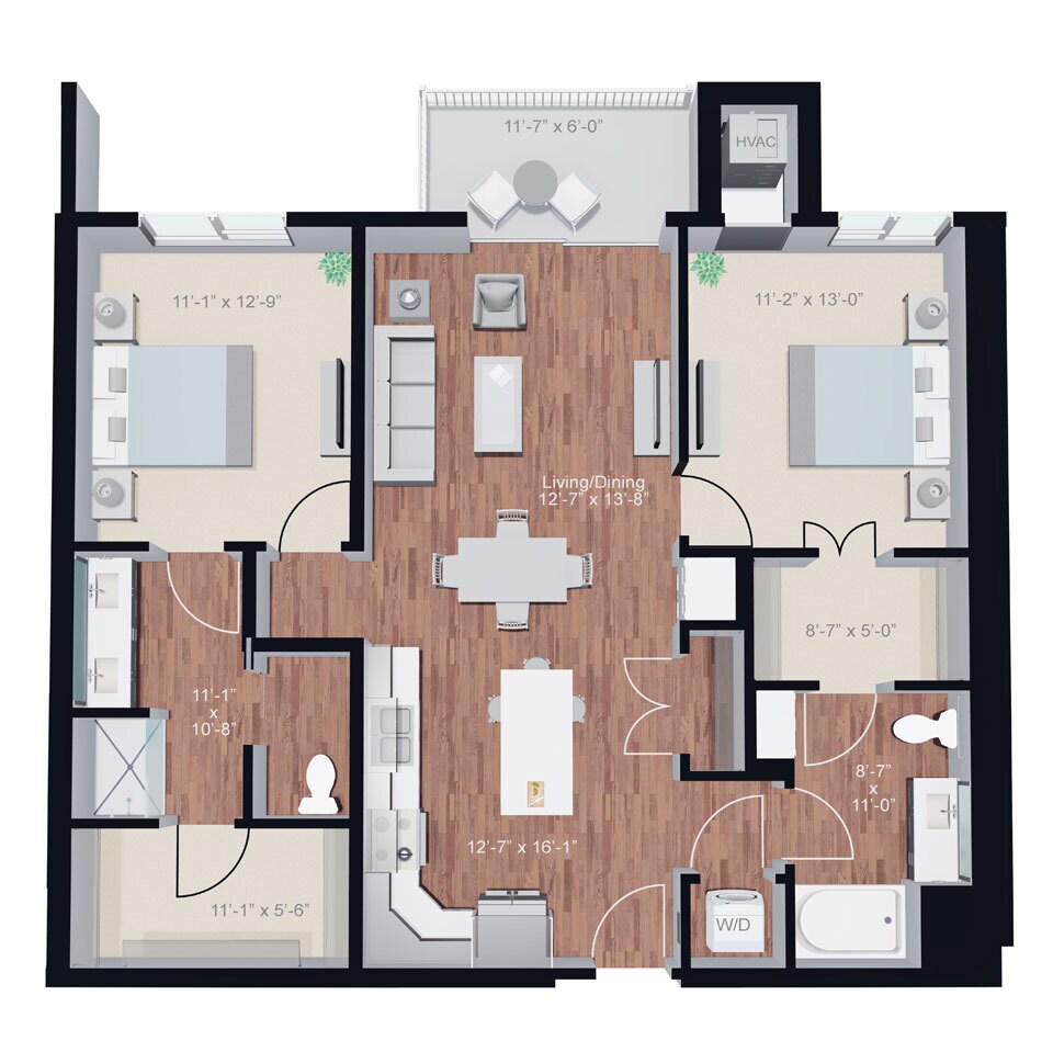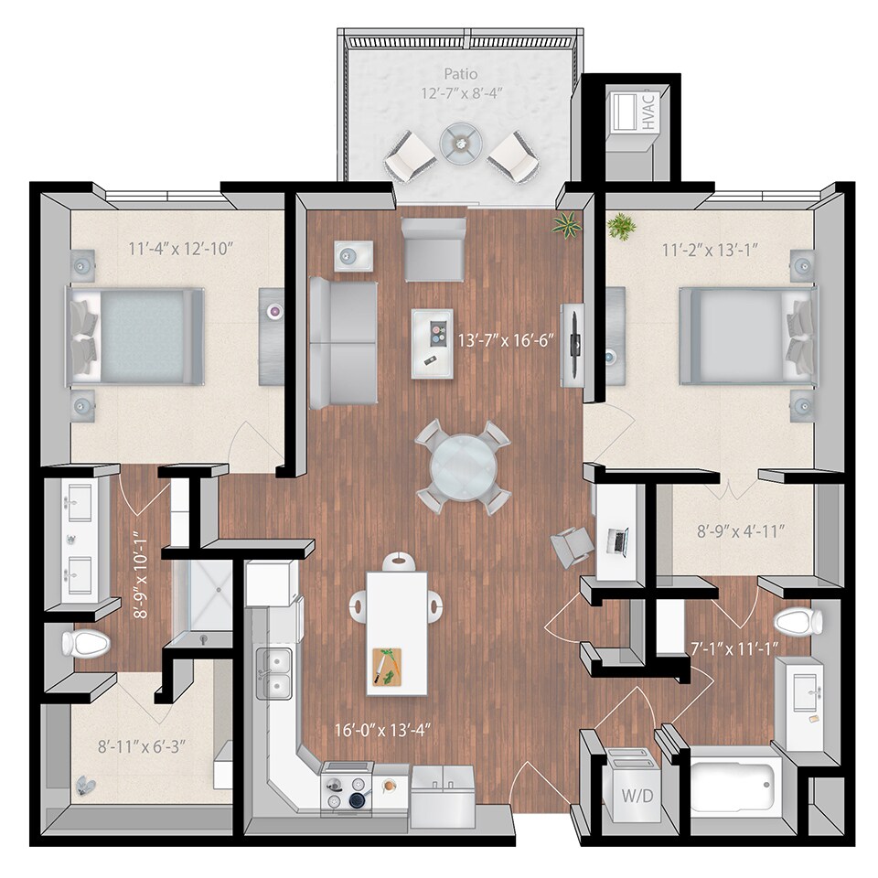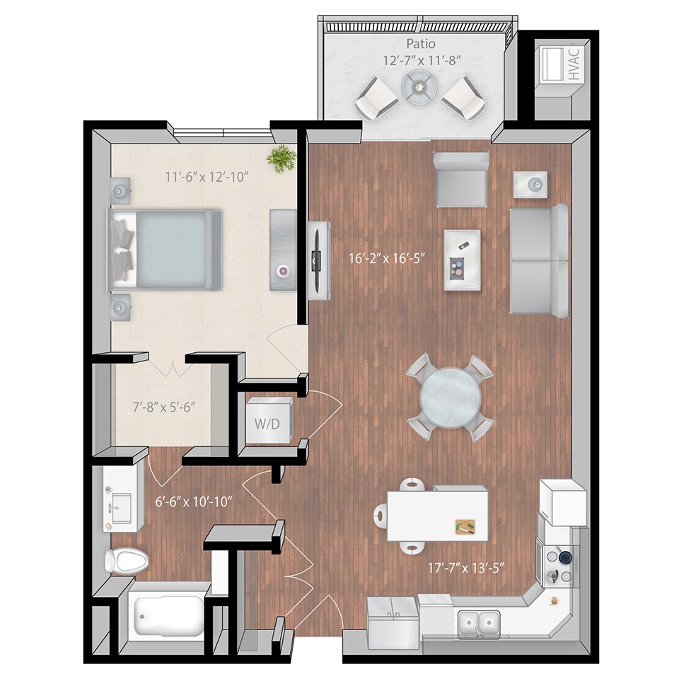Modelo de apartamento: Pepin ADA$1,7351 Dormitorio, 1 Baño, 802 sq ftDisponible Ahora![]()
