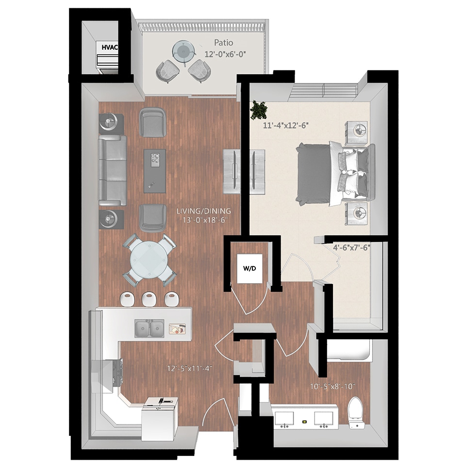 1 Dormitorio, 1 Baño, 675 pies²Más CargosDisponible AhoraEl más baratoEsta opción tiene los precios más bajos para este modeloGalería del Modelo