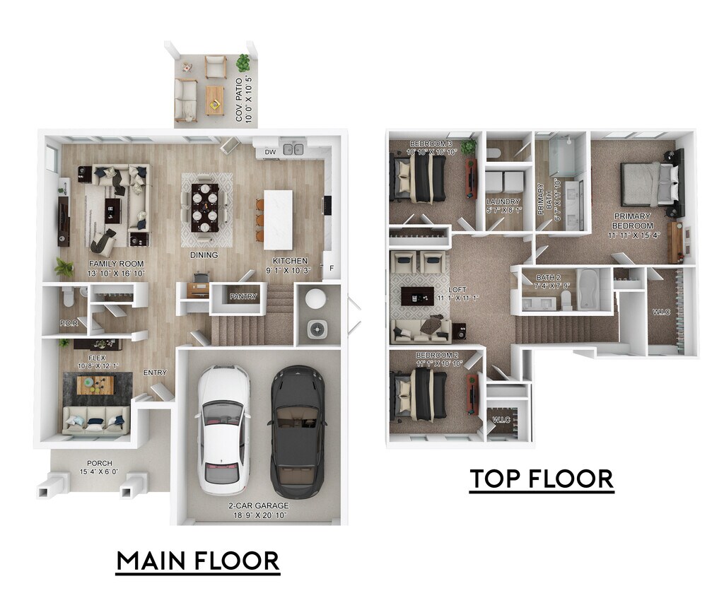 3 Dormitorios, 2.5 Baños, 1935 pies²El más grandeEsta opción tiene las unidades más grandes para este modeloGalería del Modelo