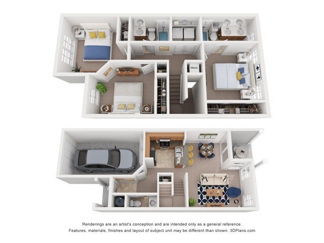 3 Dormitorios, 2.5 Baños, 1306 pies²Disponible AhoraGalería del Modelo