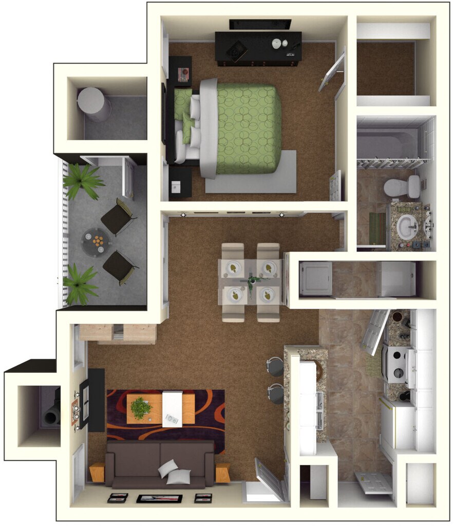 1 Dormitorio, 1 Baño, 808 pies²Disponible AhoraGalería del Modelo