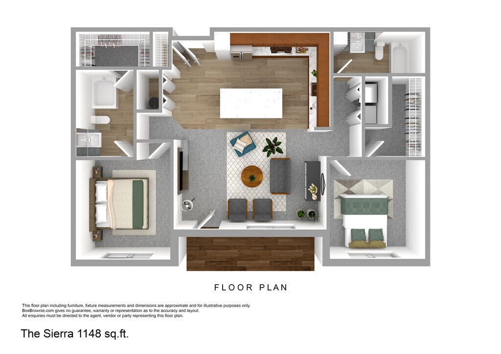 2 Dormitorios, 2 Baños, 1148 pies²Galería del Modelo