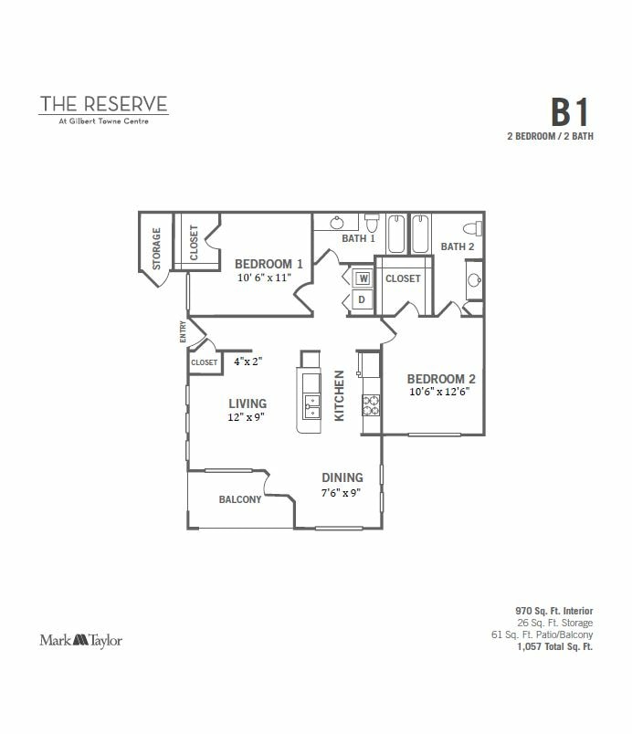 2 Dormitorios, 2 Baños, 970 pies²Disponible AhoraGalería del Modelo