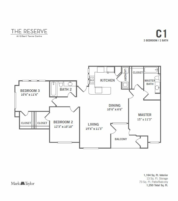 3 Dormitorios, 2 Baños, 1164 pies²Disponible Oct 28Galería del Modelo