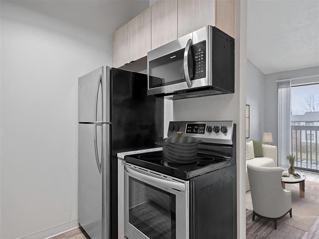 Escapa del ajetreo en un refugio privado en Cook's Crossing Apartments. Cerca de la naturaleza, pero aún conectado con tus puntos de acceso favoritos de la ciudad, nuestros encantadores apartamentos en Milford, OH, te brindan las comodidades de un estilo de vida moderno. Entra en nuestro hermoso entorno tipo parque y disfruta de los elegantes interiores de tu hogar recientemente renovado; te resultará fácil relajarte desde el momento en que entras. No hay nada que extrañarás dentro de nuestro complejo. Nuestros espaciosos diseños de dos habitaciones sientan las bases para una experiencia relajante, con todo, desde hermosos techos altos hasta alfombras suaves. La cocina está equipada con todos los elementos esenciales que necesitas para que cocinar sea muy fácil, mientras que los pisos de madera y vinilo le dan al lugar un encanto atemporal. Es fácil sentirse como en casa cuando estás rodeado de colores cálidos y ventanas amplias que permiten que la luz natural fluya sin problemas de una habitación a otra. En cuanto a otras comodidades, tendrás acceso a microondas, lavadoras y secadoras apilables, así como a patios o balcones donde podrás descansar y recargar energías. Césped recién cortado, un entorno exuberante y un ambiente sereno te dan la bienvenida fuera de nuestros apartamentos de Milford. Las prácticas comodidades incluyen Internet de alta velocidad y acceso privado, junto con los servicios de nuestro amable personal. Brindan mantenimiento en el lugar, excelente administración y están ahí para responder cualquier pregunta que puedas tener. Aventúrate al aire libre más allá de este oasis verde y estarás conectado con excelentes escuelas, universidades y empleadores. RDI, Fidelity Investments y la Universidad de Cincinnati están a poca distancia, con el centro comercial Mulberry Square a solo 6 minutos. ¡Llama hoy para hacer un recorrido privado por nuestros apartamentos en Milford, Ohio!