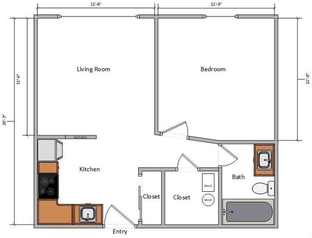 Efficiency A - Plano 8 Unidad de apartamento: 11-04Modelo de apartamento: Efficiency A$8001 Dormitorio, 1 Baño, 450 sq ftDisponible AhoraOne Bedroom A