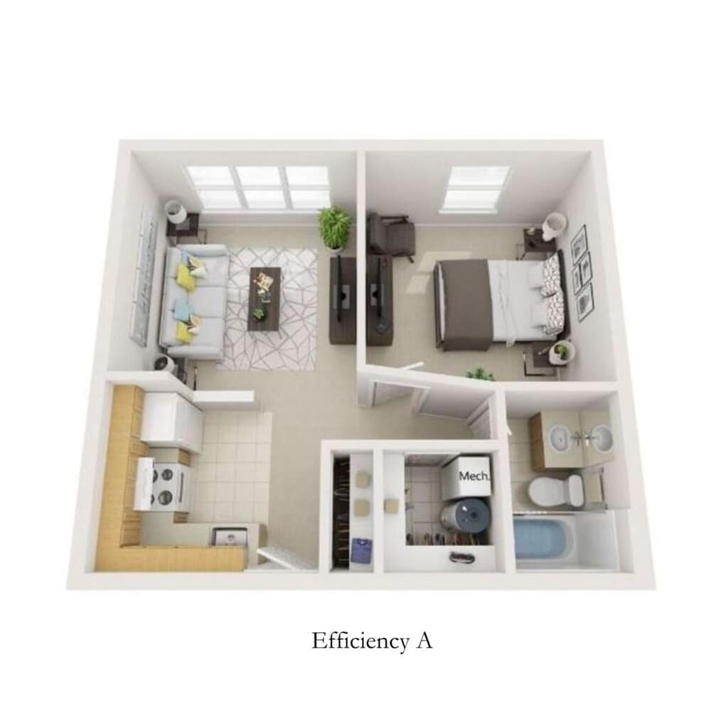 Modelo de apartamento: Efficiency A$8001 Dormitorio, 1 Baño, 450 sq ftDisponible AhoraPlanosFotos![]()