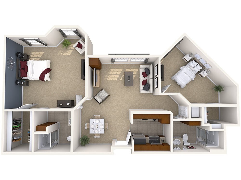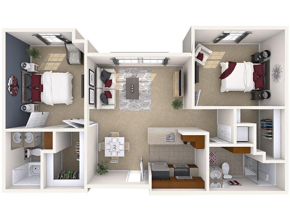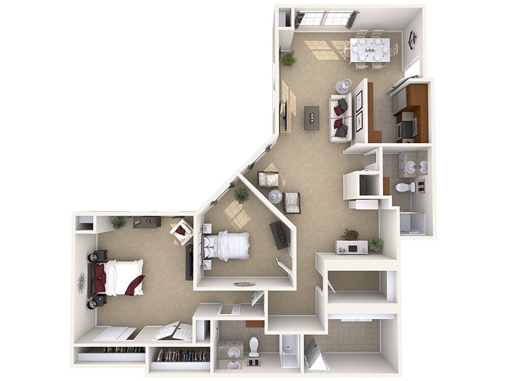 Modelo de apartamento: Beaumont- Independent Living2 Dormitorios, 2 Baños, 1306 sq ftNo Disponible![]()