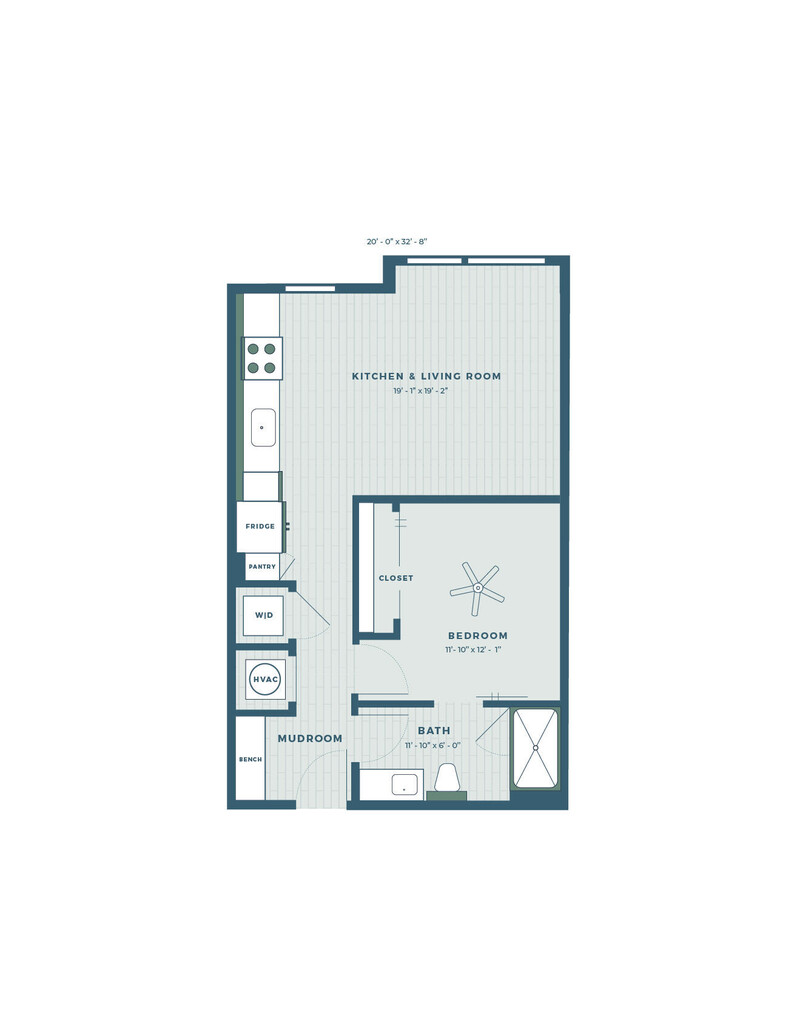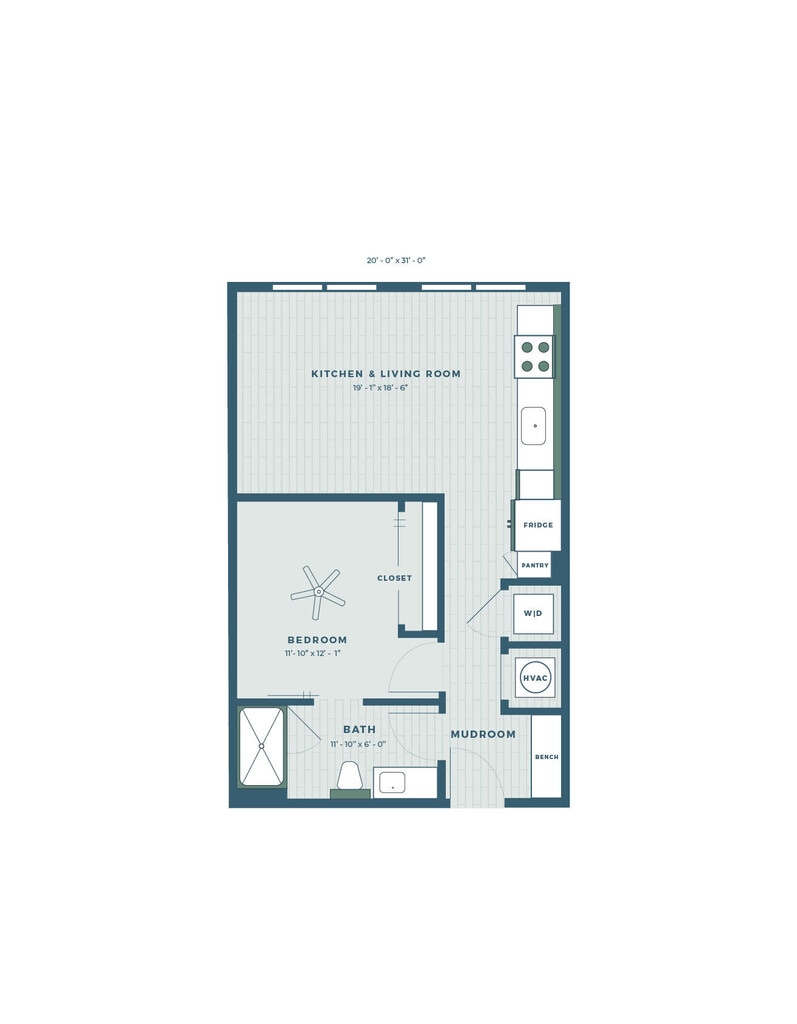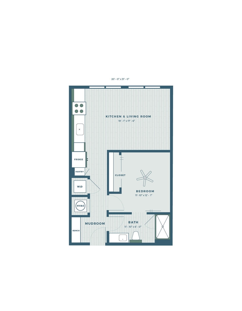 1 Dormitorio, 1 Baño, 742 pies²Disponible AhoraGalería del Modelo