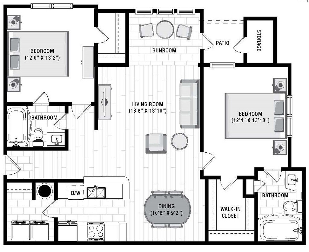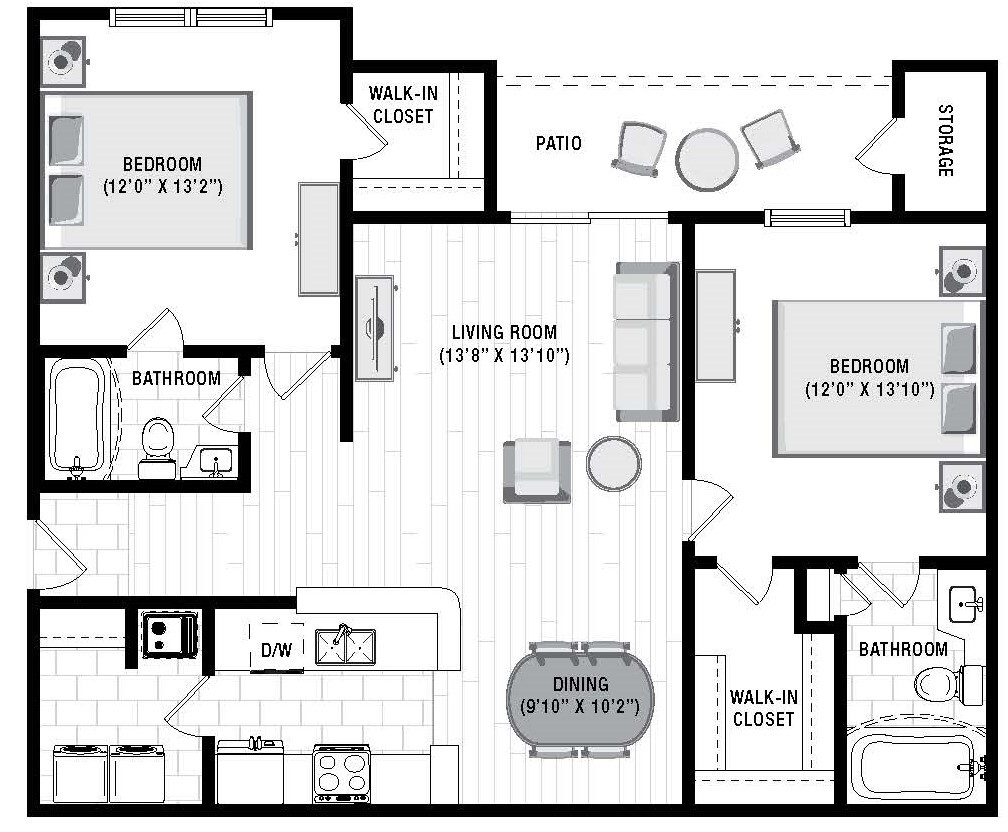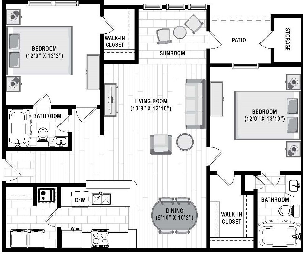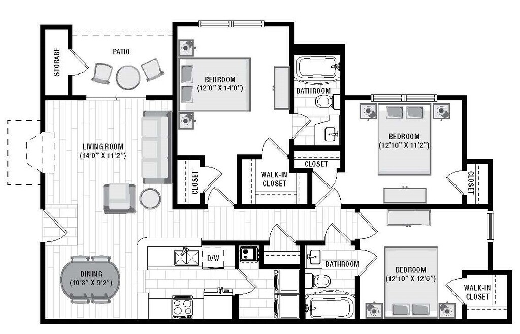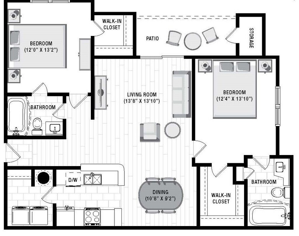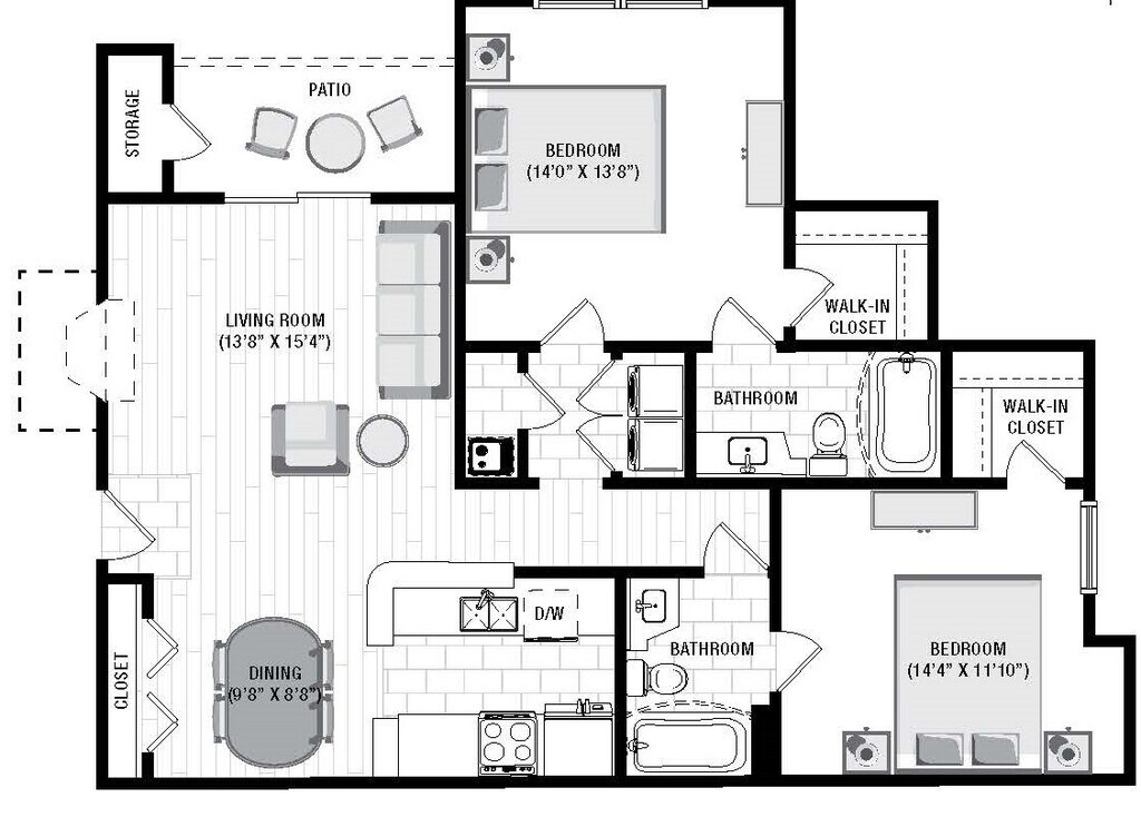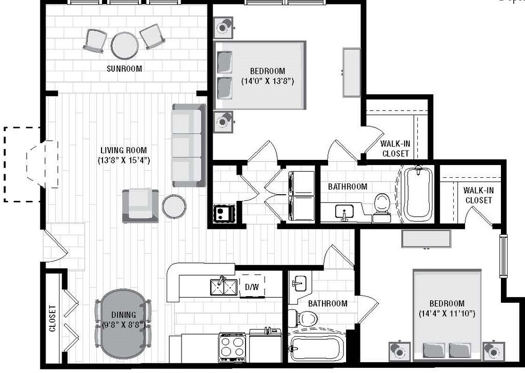 Modelo de apartamento: The Woods Deck - ClassicDesde $1,3591 Dormitorio, 1 Baño, 779 sq ftDisponible November 23, 2025Los planos de la planta son una interpretación artística. Todas las dimensiones son aproximadas. Los tamaños o el detalle del producto real y sus especificaciones pueden variar. No todas las características están disponibles en todos los hogares para rentar. Los precios y la disponibilidad están sujetos a cambios. El alquiler que se muestra es mensual. Se pueden aplicar ciertos cargos, por ejemplo, entrega de paquetes, recolección de basura, agua, servicios, etc. Depositos varian. Consulta a un representante para conocer detalles.
