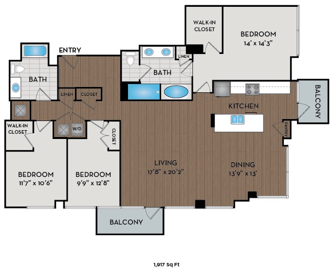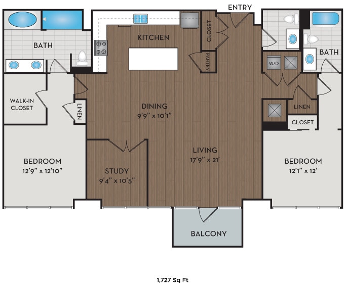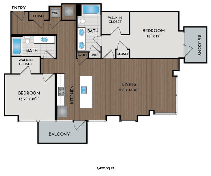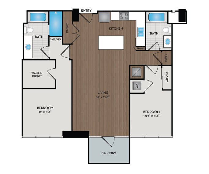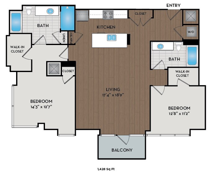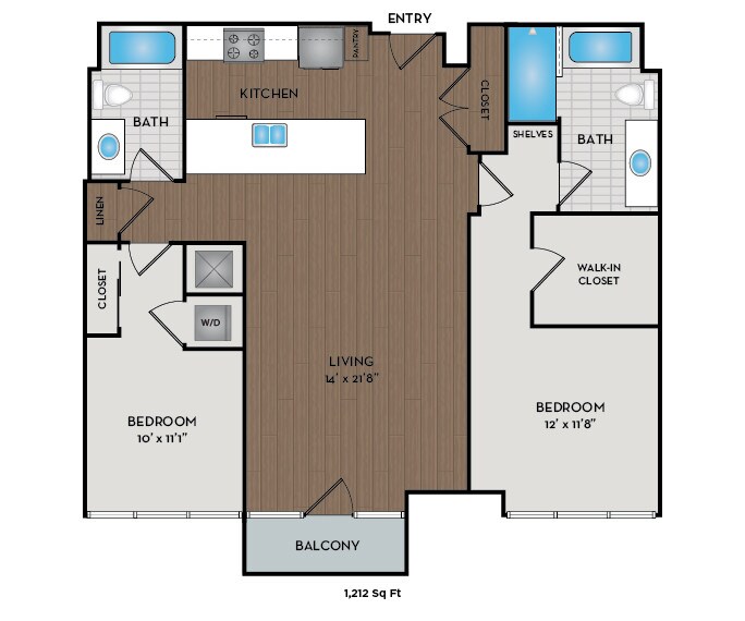 11F4 - Plano 1 Unidad de apartamento: N1602Modelo de apartamento: 11F4$2,1901 Dormitorio, 1 Baño, 934 sq ftDisponible Ahora![]()