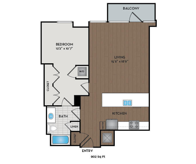 1 Dormitorio, 1 Baño, 902 pies²Disponible AhoraGalería del Modelo